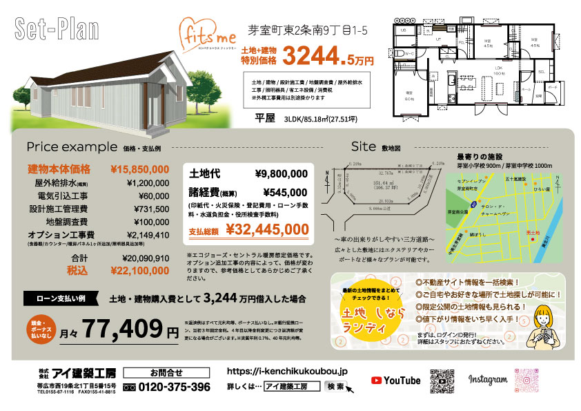 | 注意事項 | 土地売買契3ヵ月以内に建築請負契約を終結することを条件とします。3ヵ月以内に請負契約が成立しない場合、土地売買契約は解除され、支払われた金額はすべて返金されます。 |